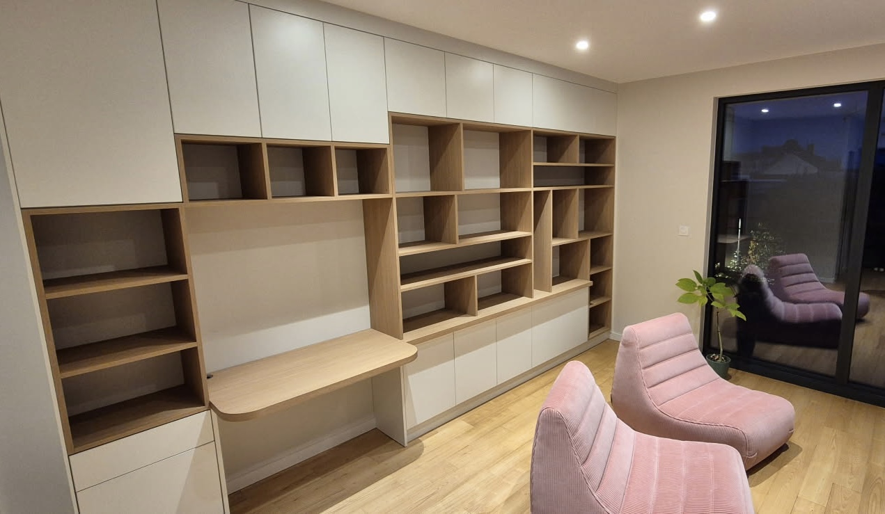 Depuis notre atelier d’Aubière, nous imaginons et fabriquons des menuiseries uniques qui s’adaptent parfaitement à vos espaces. Cuisines, dressings, bibliothèques : chaque réalisation est pensée pour allier esthétisme, robustesse et fonctionnalité.